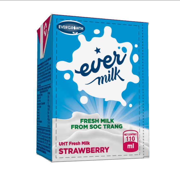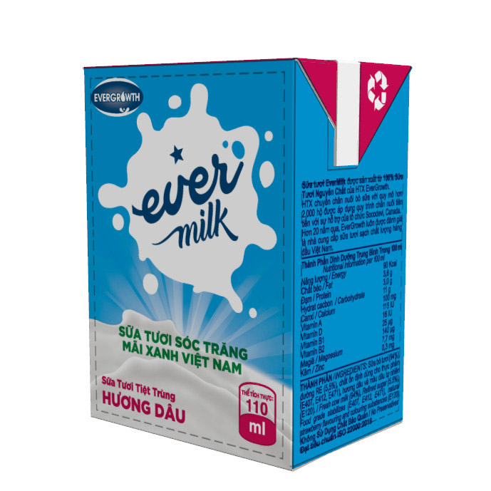 - Thành phần: Sữa bò tươi (94%), đường RE (5,5%), chất ổn định dùng cho thực phẩm (E407, E412, E471), hương dâu và màu dâu tự nhiên (E120).